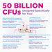 Support Your Health with Our Comprehensive Probiotic & Prebiotic Supplement Formula Unlock the full potential of your wellness journey with our advanced probiotic formula, expertly designed to support gut health and digestion. Featuring 50 Billion CFUs of 10 carefully selected strains and natural prebiotics, this powerful blend supports digestion, nutrient absorption, and a balanced gut microbiome. Women's Health & Urinary Tract Care Specifically formulated with women's unique health needs in mind, our probiotics support a balanced vaginal pH and urinary tract health. This sugar-free and preservative-free formula combines 10 powerful probiotics with natural prebiotics, providing daily care that supports good gut balance and intimate wellness. With no added calories, it's a clean and effective way to feel your best every day. Quality You Can Trust Our probiotics are made with Non-GMO, vegan, and gluten-free ingredients, they're free from common allergens like soy, dairy, and nuts, ensuring they're suitable for a wide range of dietary needs. Produced in a GMP-certified facility, these probiotics meet the highest standards of quality. Convenience Meets Innovation Thanks to advanced delayed-release technology, the probiotics are protected from harsh stomach acids, ensuring maximum delivery to the intestines where they’re needed most. Plus, our shelf-stable formula means you can enjoy the convenience of no refrigeration required—perfect for your busy lifestyle