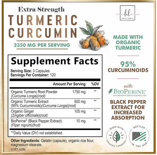 Hello Lovely!ENHANCED ABSORPTION WITH BIOPERINE POWERFUL TURMERIC & GINGER FORMULA EFFECTIVE JOINT SUPPORT TRUSTED QUALITY & BOTTLED IN USA TURMERIC CU...