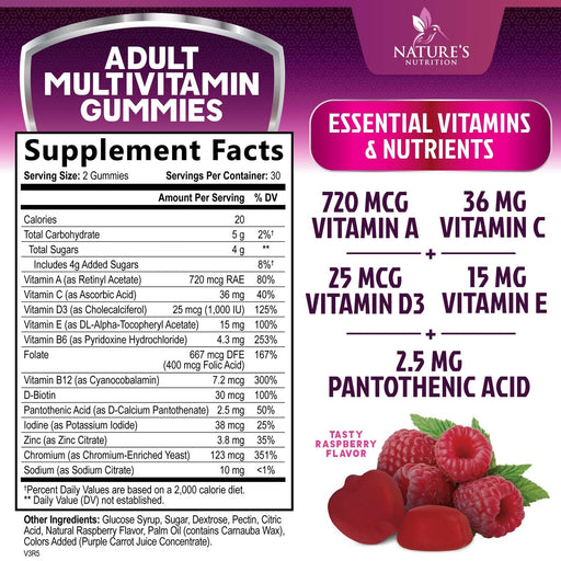 Nature's NutritionSupport your health with Natures Nutrition for Adults Multivitamin Gummies—a tasty, berry-flavored gummy vitamin for both men & women. Each dai...
