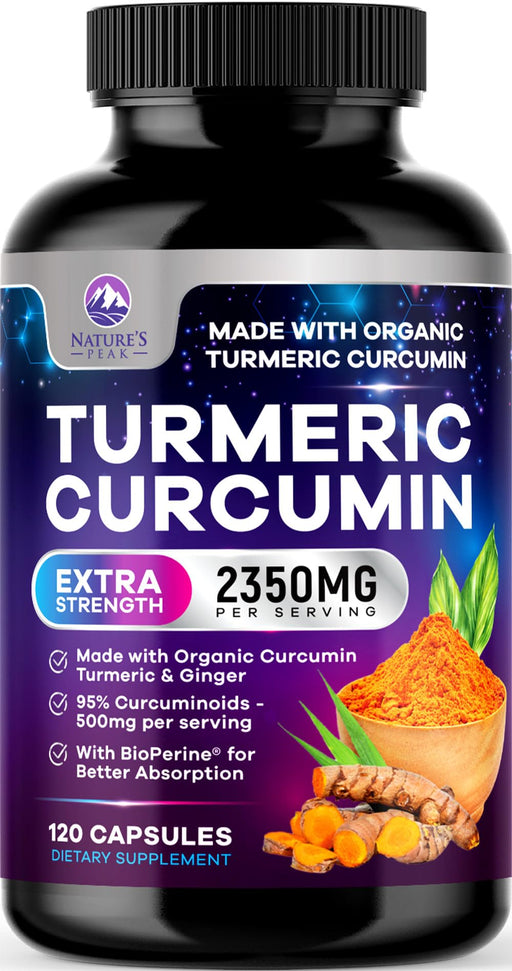 Nature's PeakSupport daily wellness with our Turmeric Curcumin Supplement, delivering a powerful 2350mg blend of turmeric and organic ginger per serving, along ...