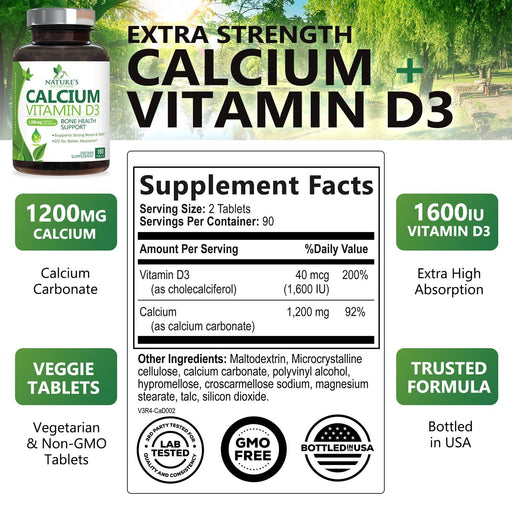 Nature's NutritionCalcium 1200 mg with Vitamin D3Support bone and overall health with our calcium supplement, delivering calcium 1200 mg with vitamin D3 for maximum ...