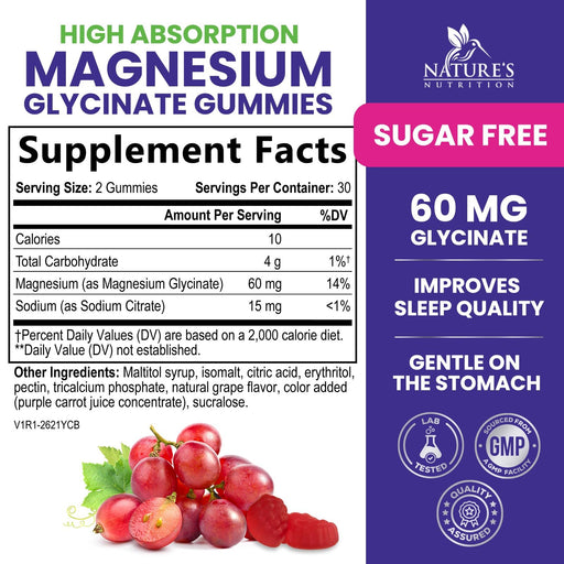 Nature's NutritionSupport daily wellness with Magnesium Glycinate Gummies, formulated with chelated magnesium glycinate for high absorption and gentle digestion. The...