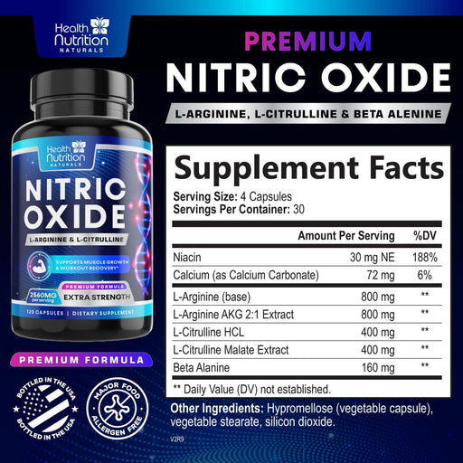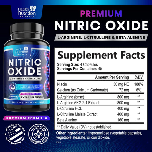 Health Nutrition NaturalsAn extra strength l-arginine Nitric Oxide Supplement with citrulline malate, aakg, beta alanine. We've created this premium nitric oxide powerhouse...