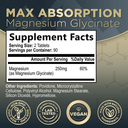 View full detailsMagnesium Glycinate Chelated for Max Absorption - Supports Bone, Muscle, Nerves & Heart Health, Nature's Sleep and Stress Support, Best Magnesium Supplement Pills for Whole Body Support - 180 Tablets