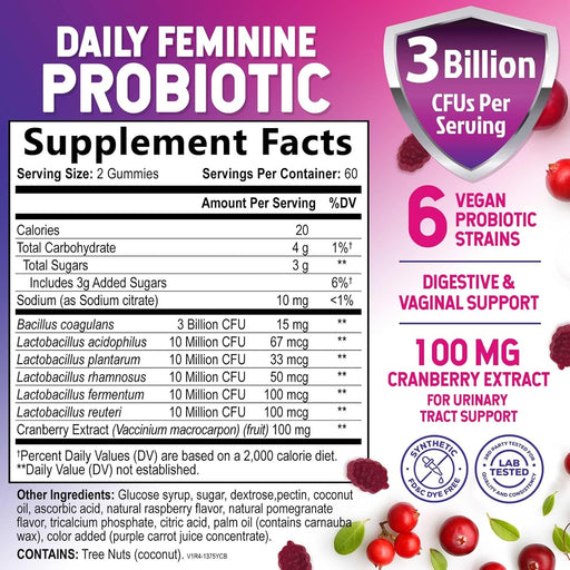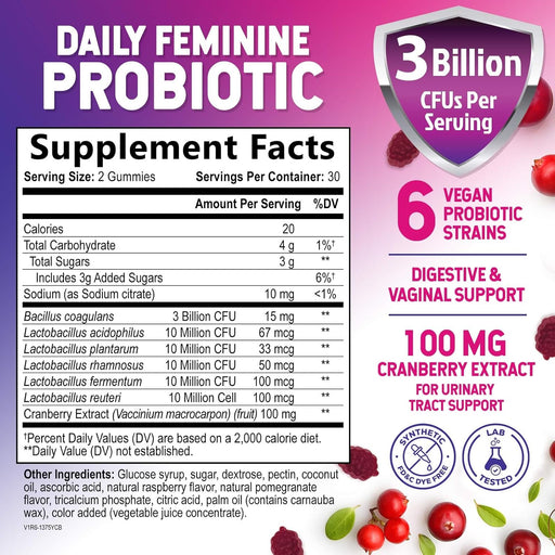 View full detailsProbiotics for Women Gummies with Cranberry - 6 Premium Strains for PH Balance, Digestive Health, Vaginal & Immune Support, 3 Billion CFU, Women's Probiotic Gummy for Feminine Health - 60 Gummies
