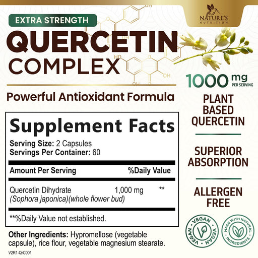 Nature's NutritionExperience the Power of Plant-Based Quercetin Each serving of our Quercetin Capsules delivers 1000mg of quercetin dihydrate sourced from Sophora ja...