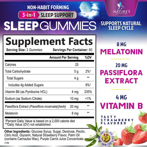 Nature's NutritionEnjoy nighttime sleep support with our delicious Sleep Gummies, featuring 8mg of melatonin per serving for extra strength support. These vegan, non...