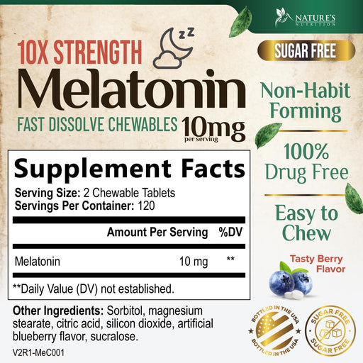Nature's NutritionExperience restful, rejuvenating sleep with Nature's Nutrition Fast Dissolve Melatonin 10mg, the perfect solution for adults seeking the best sleep...