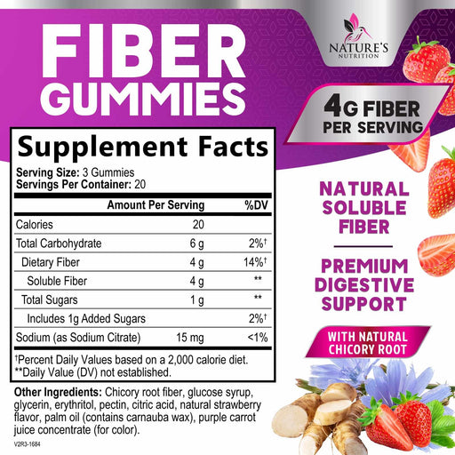 Nature's NutritionSupport digestive health with these vegan, plant-based, gluten-free fiber gummies, delivering 4g of soluble fiber per serving.Formulated as a tasty...
