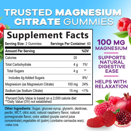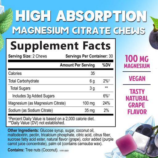 View full detailsMagnesium Citrate Supplement Gummies 100mg - High Absorption Magnesium Citrate Soft Chews for Heart, Muscle, Calm, & Nerve Health Support, Vegan Chewable Gummies for Adults, Grape-Flavor - 60 Count