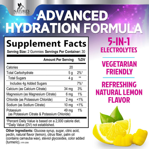 Nature's NutritionStay refreshed and energized with Nature's Nutrition Hydration Electrolyte Gummies, the advanced hydration supplement designed to keep you performi...