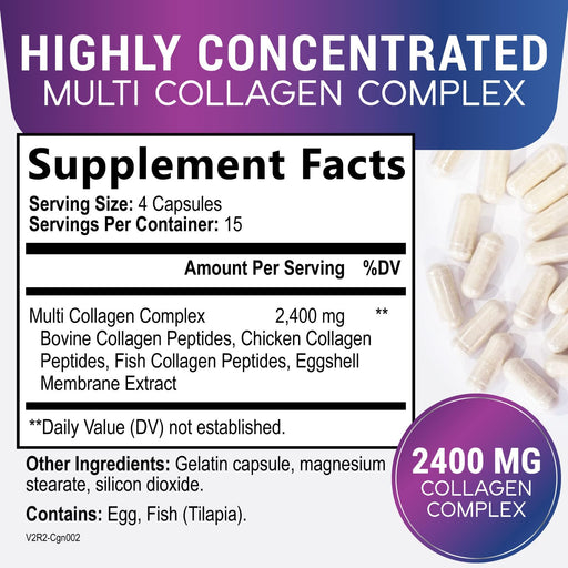 View full detailsMulti Collagen Peptides Supplement for Hair, Nail, Skin - Type I, II, III, V, X, Collagen Powder Pills - Grass-Fed, Hydrolyzed for Bone and Joint Support for Women & Men, Non-GMO - 60 Capsules