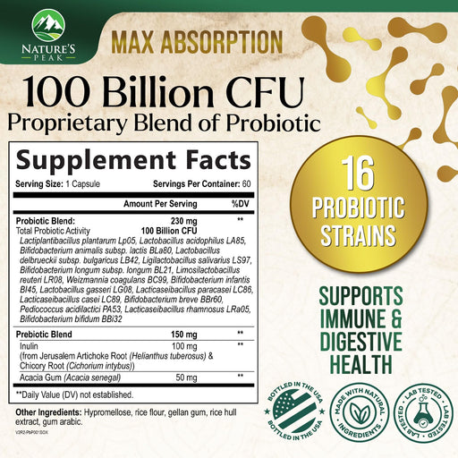 Nature's PeakExperience the best probiotic for daily wellness—our advanced probiotic supplement delivers 100 Billion CFU and 16 strains for optimal probiotics f...