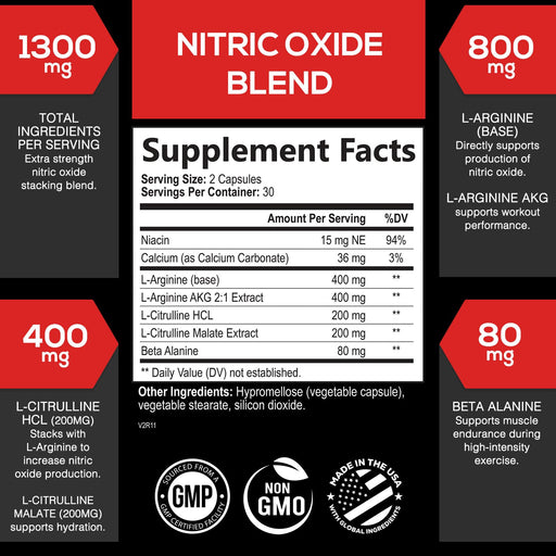 View full detailsExtra Strength Nitric Oxide Supplement 3X Strength L Arginine, Citrulline Malate, AAKG, Beta Alanine - Premium Muscle Supporting Nitric Booster - Natural Energy & Heart Health Support - 60 Capsules